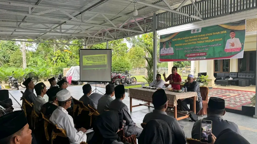 MURATARAKLIK.COM — Majelis Ulama Indonesia (MUI) Kabupaten Musi Rawas Utara (Muratara) menggelar Rapat Kerja Daerah (Rakerda) Tahun 2026 yang dirangkaikan dengan Training of Trainer (ToT) Pemateri Adab dan Etika Tingkat Sekolah Dasar. Kegiatan berlangsung di Rupit, Selasa (10/02/2026).