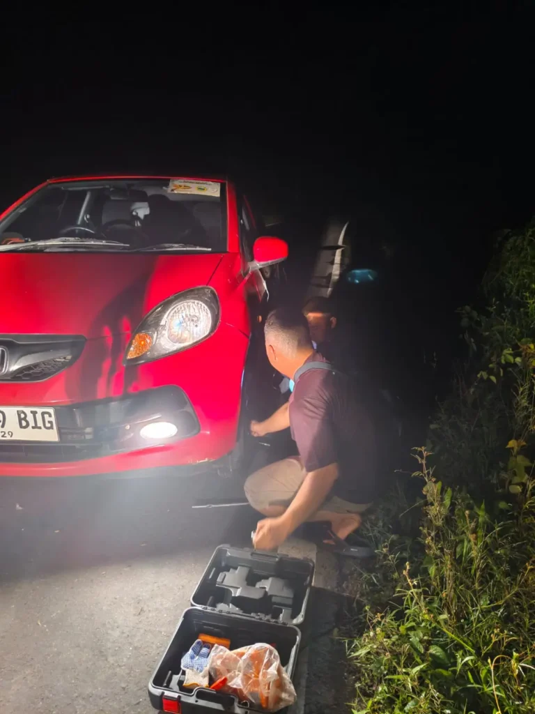 Sekitar pukul 01.37 WIB, seorang warga bernama Rendi melaporkan kendaraannya mengalami pecah ban di Jalan Lintas Sumatera, tepatnya di dekat Desa Tanjung Beringin, Kecamatan Muara Rupit, Kabupaten Musi Rawas Utara. Dalam kondisi darurat, pelapor mengaku tidak memiliki ban cadangan dan membutuhkan bantuan segera.