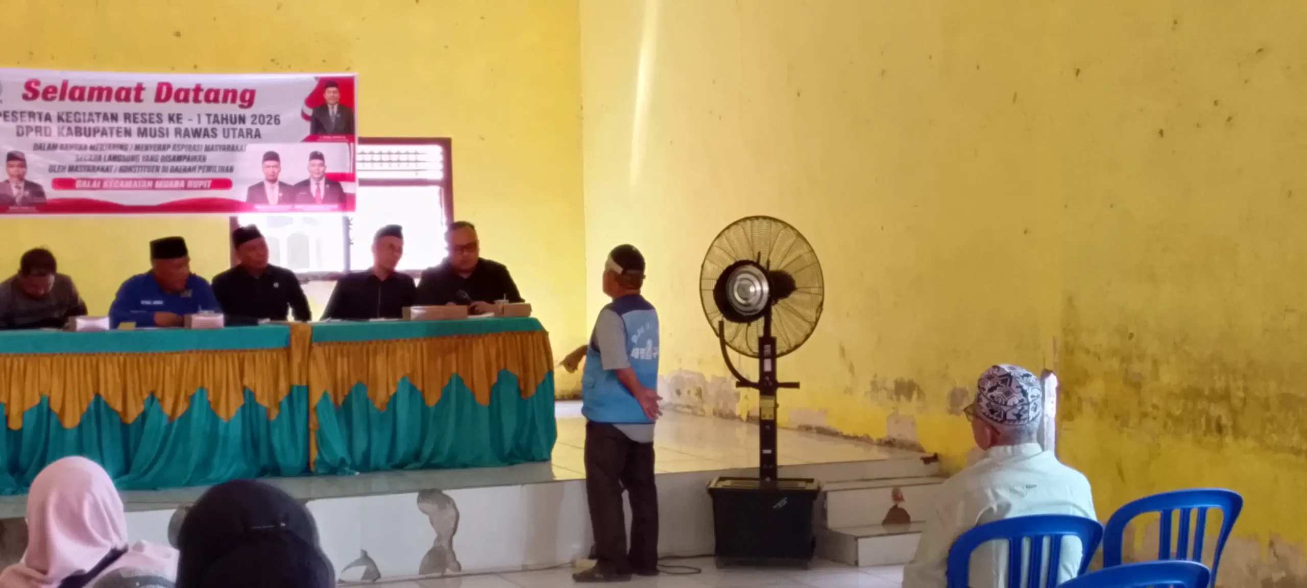 Acara yang berlangsung di aula kecamatan tersebut dihadiri oleh sejumlah anggota DPRD, dan kepala camat murarupit, tokoh masyarakat, serta perwakilan warga dari berbagai desa. Dalam kesempatan itu, salah satu anggota dewan tampak menyampaikan sambutan sekaligus membuka dialog terbuka dengan masyarakat.