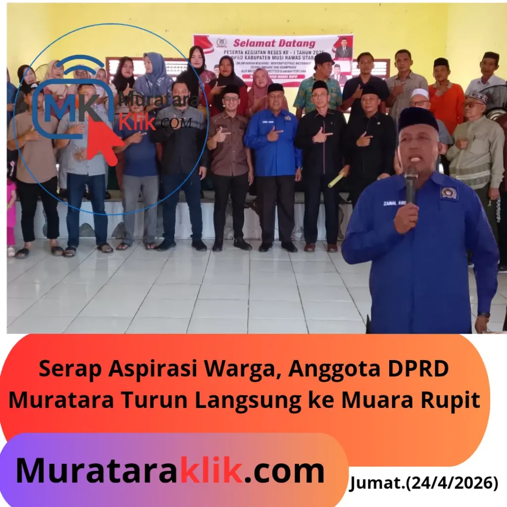 Murataraklik.com – Suasana penuh antusiasme mewarnai kegiatan reses anggota DPRD di Muara Rupit, yang digelar dalam rangka menyerap langsung aspirasi masyarakat, Kegiatan ini menjadi momentum penting bagi warga untuk menyampaikan berbagai kebutuhan dan harapan mereka kepada para wakil rakyat.jumat,(24/4/2026)