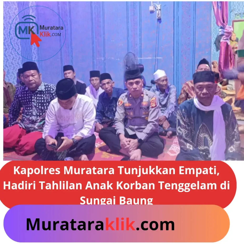 Murataraklik.com – Duka mendalam masih menyelimuti keluarga korban anak yang tenggelam di Sungai Baung. Sebagai bentuk kepedulian dan empati, Kapolres Musi Rawas Utara AKBP Rendy Surya Aditama, S.H., S.I.K., M.H. melalui Kapolsek Rawas Ulu Iptu Hari Suharto, S.Pd., M.Si. menghadiri tahlilan di rumah duka, Minggu (26/4/2026) malam.